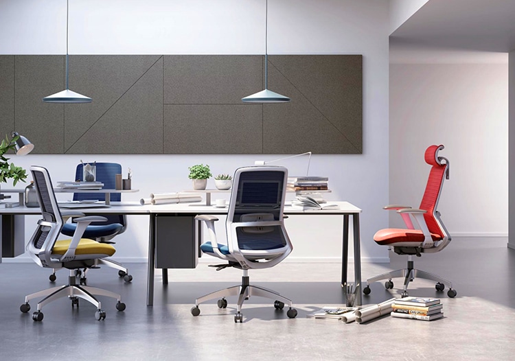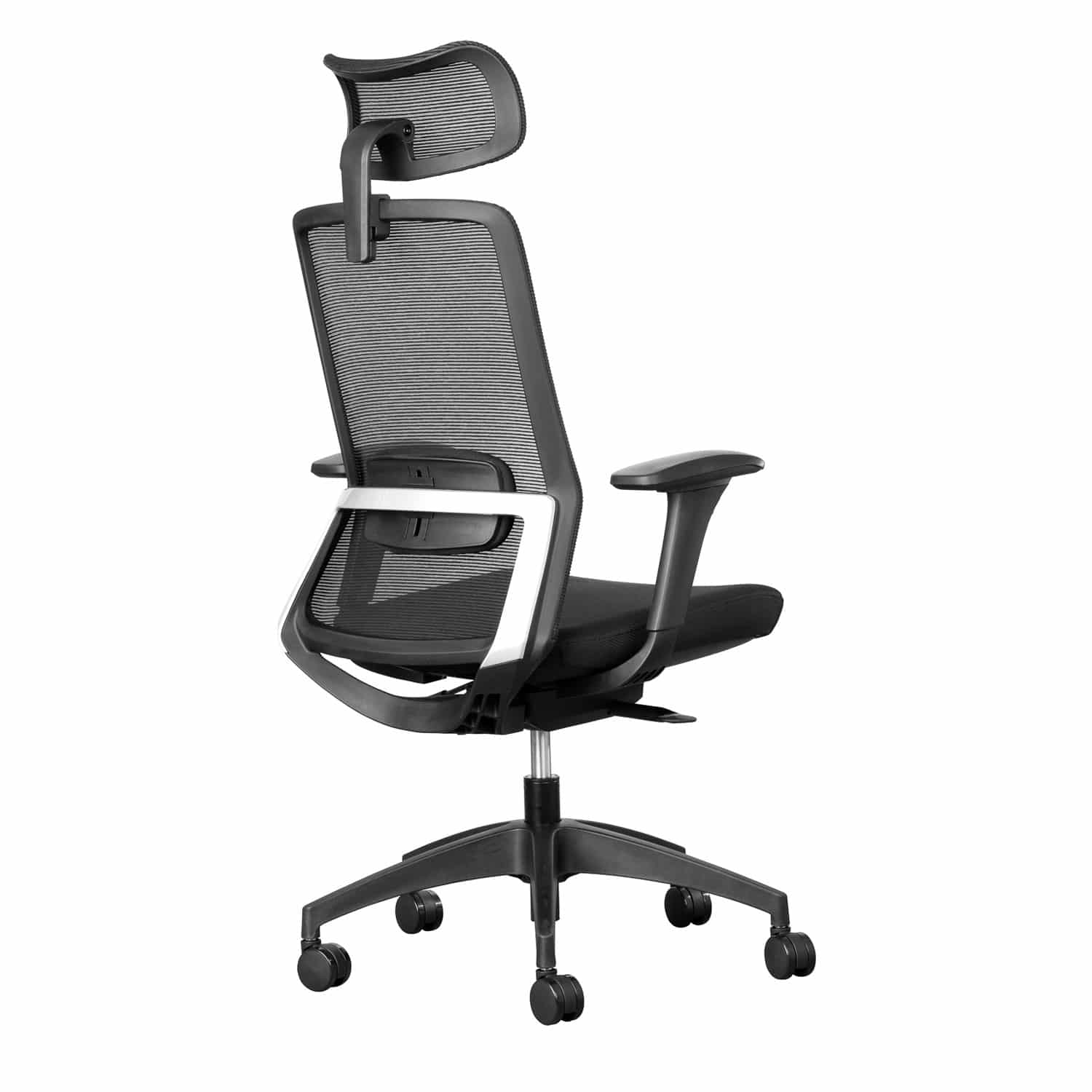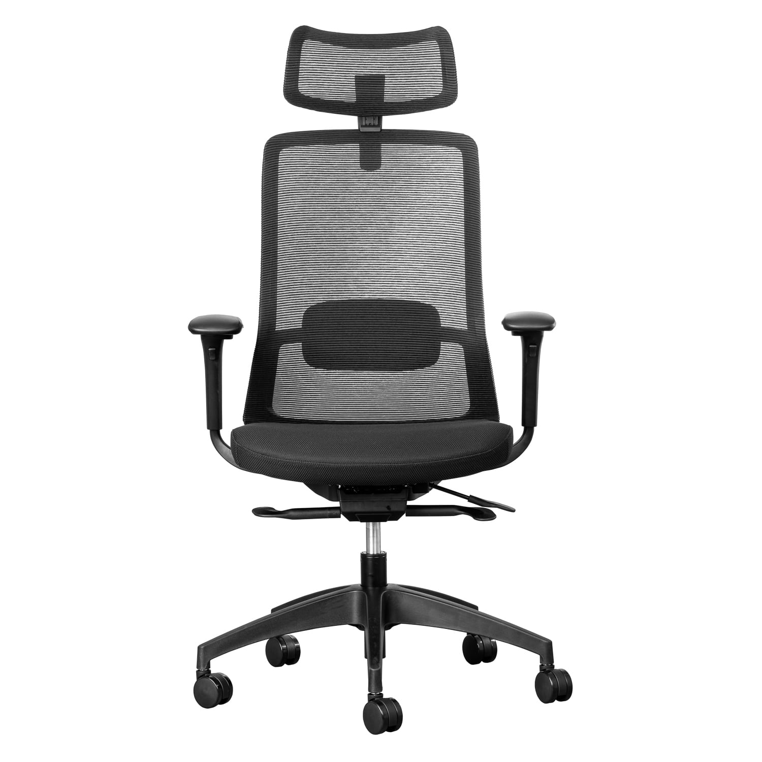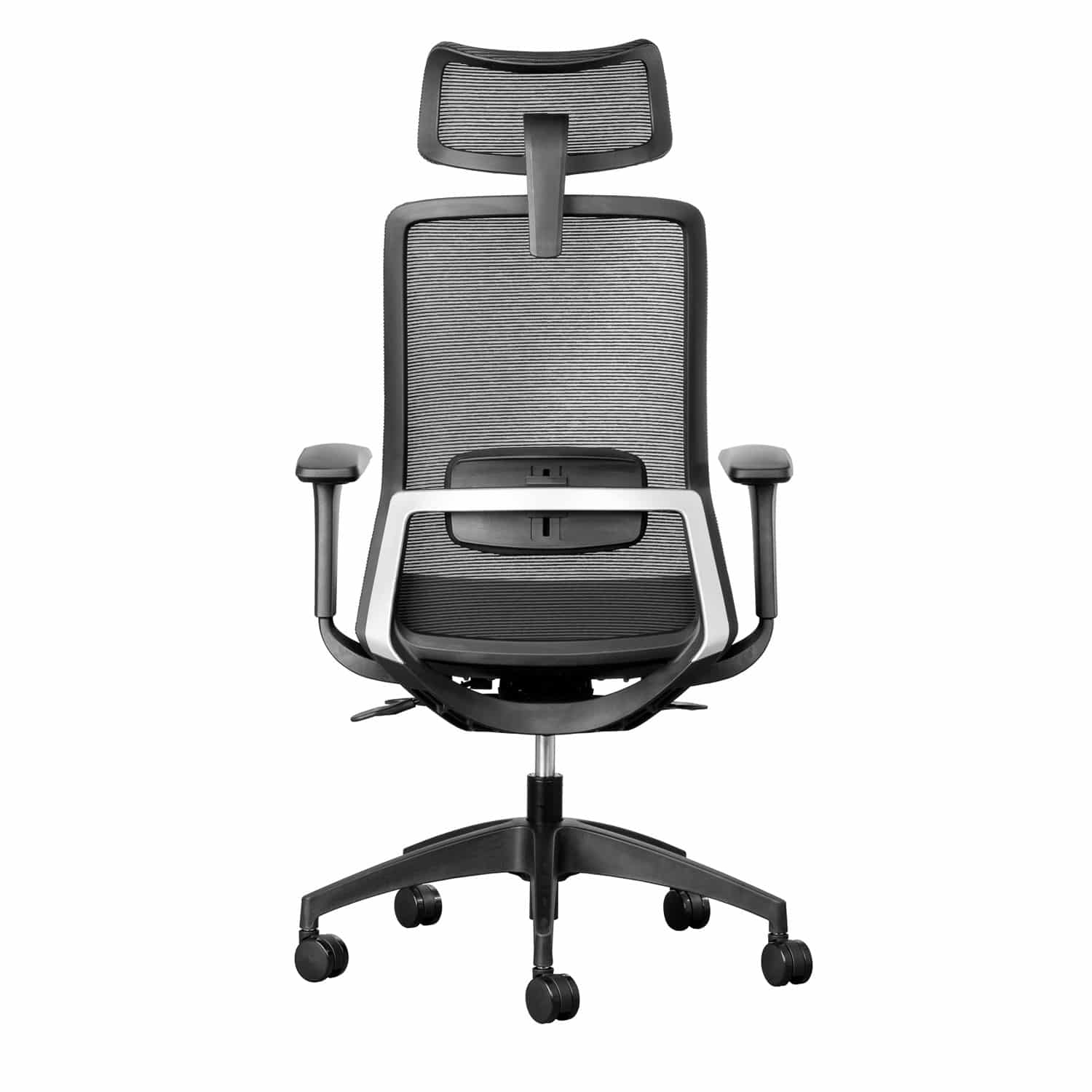 With a fully adjustable headrest and lumbar support, multi-adjustable armrests and a synchronous swivel & tilt mechanism with integrated seat depth adjustment, this high-tech office chair can quickly be adjusted to suit any user.